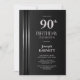 Silver Striped Black Grey 90th Birthday Party Invitation