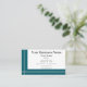 Classic, simple, and elegant, this business card features dark teal color blocks down the left side and on the bottom, with two narrow silver stripes down and across the teal borders. Very sharp, professional, and timeless, and easily adaptable to a variety of businesses and professions.