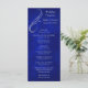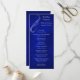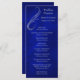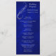 This elegant wedding program card features a silver swirl design on the upper left shining against an abstract royal blue background. There is plenty of room for your customized text, also in silver. If you need to change the font, size, location, or color of the text, use Customize It. The back of the invitation has the same blue background without the text.