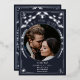 Reveal your destiny with this tarot-inspired wedding Save-The-Date featuring a celestial circle frame with your photo inside surrounded by clouds, moons, and sun, with an eye at the top, all in real silver foil against a navy background. Perfect for a magical and timeless celebration! NOTE: The silver featured on the back of this item is NOT real foil.