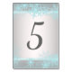 Snowflake table number cards with pretty teal blue snowflakes on a silver gray background. You can add the numbers you need in the font style and color of your choice.