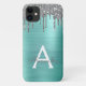Silver Teal Glitter Brushed Metal Monogram Name Case-Mate iPhone Case