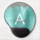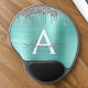 Silver Teal Glitter Brushed Metal Monogram Name Gel Mouse Pad