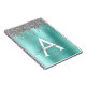 Silver Teal Glitter Brushed Metal Monogram Name Notebook