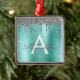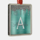 Silver Teal Glitter Brushed Metal Monogram Name Ornament