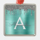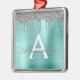 Silver and Teal Aqua Blue Faux Foil Metallic Sparkle Glitter Brushed Metal Monogram Name and Initial Christmas Ornament. This makes the perfect sweet 16 birthday, wedding, bridal shower, anniversary, baby shower or bachelorette party gift for someone that loves glam luxury and chic styles.