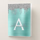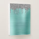 Silver Teal Glitter Brushed Metal Monogram Name Pocket Folder