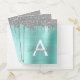 Silver and Teal Aqua Blue Trendy Cool Chic and Modern Faux Foil Metallic Sparkle Glitter Brushed Metal Monogram Name and Initial Pocket Folder for Planning a Birthday, Wedding, Anniversary, Taxes, Graduation, Bridal Shower, Back to School or Baby Shower.