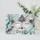 Silver Teal Sparkle Mask Masquerade Party RSVP Card