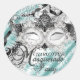 Silver & Teal Masquerade Birthday party Sticker. Pretty silver and black diamond mask & feather jewels. Please note: All flat images!