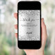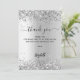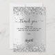 A faux silver looking background, decorated with confetti. Large hand lettered script and the text: Thank You. Personalize and add your thank you note and name.