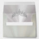 This design features a tiara on a pearl white background on the inside flap, and decorative silver scrolls. Envelope outside is available in different pastel colors. Personalize the return address on the back flap. Designed to coordinate with the "Cream Floral on Pastels" Quinceanera Collection. To change details, click «Personalize». To move the text or change the text size, font, or color click «Click to customize further»
