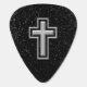 Silver Tone Christian Cross on Black Sparkle Guitar Pick
