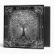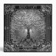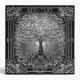 A beautiful ornate design with a silver tree of life with an ornate frame and a heart at the roots. There is a night sky background. Art by Amelia Carrie