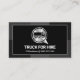 Over at the top is a silver truck logo that is made into a speech bubble, you can use. Below the logo is the business name "Truck For Hire" which you can change alongside the contact details.
