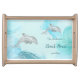 Silver Turquoise Ink Dolphin Custom Coastal Serving Tray