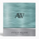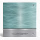 This design features a turquoise abstract texture combined with a brushed silver metallic surface. The upper section shows a diffused, criss-cross pattern with warm blue tones and subtle light reflections, while the lower portion displays a smooth horizontal brushed-metal finish in silver. The two areas are divided by a thin polished metallic strip, creating a refined and elegant contrast.