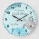 Silver Turtles Turquoise Ink Family Name Coastal Large Clock