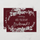 Will you be my bridesmaid on a modern, pretty chic and elegant Rose gold script Floral red burgundy wedding card with hand painted silver foliage and faux silver typography. The red color background is fully customizable. Perfect for chic, elegant theme wedding