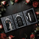 Set the stage for a hauntingly elegant event with these gothic all-in-one invitations. Inspired by vampire cathedrals featuring striking silver and black designs, it is perfect for a dramatic and unforgettable celebration. They are ideal for lovers of dark romance and timeless allure. The silver featured in this product is NOT real foil and is printed flat.