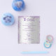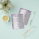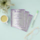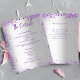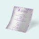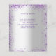 A modern, elegant wedding details/program/timeline. A faux silver looking background, decorated with violet, lavender colored faux glitter. Personalize and add your names and wedding details. Violet colored letters.