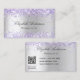 A faux silver metallic looking background. Decorated with violet, lavender colored faux glitter dust. Personalize and add your name and a text on front.