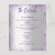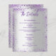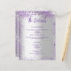 A modern, elegant wedding details/program/timeline. A faux silver looking background, decorated with violet, lavender colored faux glitter. Personalize and add your names and wedding details. Violet colored letters.
