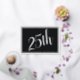 Silver wedding anniversary party invitations with silver foil design. These flat cards have foil embellishments on the front. A block of silver foil, with “25th” cut out to show a light gray background, and bordered in a thin line of silver, is the design on the front. The back of the card is white with a light gray, line border with script text in the center. Add names of the couple, with party information and RSVP using the paragraph provided.