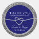 Simple, elegant, modern glitter silver and royal blue wedding thank you sticker for favors, with romantic rope heart.