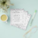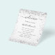 On the front: A modern, elegant wedding program, timeline. A white background decorated with faux silver confetti. Personalize and add your names and wedding details. Black colored letters. If you have more text it's possible to reduce the line space.