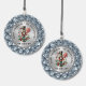 Colorful Christmas nutcracker ornament design with a holiday wreath on a candy cane set against a metallic silver texture print background. Image of a white diamond mandala background. Custom text in black.
