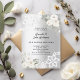 For an elegant and romantic 10th wedding anniversary. A faux silver looking background decorated with white florals, roses and white lace. Personalize and add your names and details.