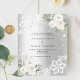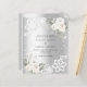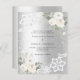 For an elegant and romantic wedding. A faux silver looking background decorated with white florals, roses, white lace and faux diamonds. Personalize and add your names and details.