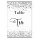 Silver white glitter calligraphy table ten 10 number