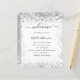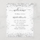 On the front: A modern, elegant wedding program, timeline. A white background decorated with faux silver glitter, sparkles. Personalize and add your names and wedding details. Black colored letters. If you have more text it's possible to reduce the line space.