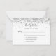On front: A white background, decorated with sparkling faux silver glitter sparkles. Personalize and add the reply by date and your names.