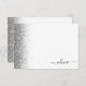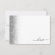 Silver and White Sparkle Glitter Script Monogram Name Note Card. This makes the perfect sweet 16 birthday, wedding, bridal shower, anniversary, baby shower or bachelorette party gift for someone that loves glam luxury and chic styles.