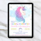Silver Winter Unicorn Rainbow Birthday Invitation