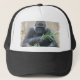 Gorilla sitting playing with bamboo reeds baseball cap.
