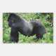 Photo sticker of a strong silverback mountain gorilla, the leader of the group, in its natural habitat in the green jungle of middle Africa in the 'Volcanoes national parc' in Rwanda.