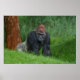 In this exciting image, a powerful silverback gorilla stands in lush green grass, its gaze fixed ahead with a solitary tree in the background.