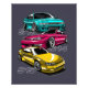 Anime Style design that portrays the evolution of the chassis of the legendary Silvia, the image shows the S13, S14, S15 models.