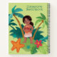 This vibrant illustration introduces Simea, Moana's younger sister, from the animated world of Moana. Simea stands with a bright, adventurous smile, exuding youthful enthusiasm and curiosity. Dressed in a beautifully patterned orange and white outfit that reflects traditional Polynesian designs, she is surrounded by lush tropical flora, a starfish, and the iconic palm trees of their island home. Her playful and explorative spirit is captured perfectly in this image, highlighting her connection to the natural world and her emerging role as a young navigator. This graphic beautifully encapsulates Simea's charm and her potential to follow in Moana's footsteps as a beloved character in her own right.