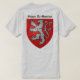 Shirt featuring the coat of arms of Simon De Monfort and a picture of the knight himself on the front pocket.