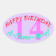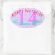 This minimal, simple birthday sticker design features a message like "HAPPY BIRTHDAY, A-Name-Here!", where the name can be personalized. The birthday number can also be personalized. Stickers like this could perhaps be given as a gift, or perhaps used as decorations, when celebrating somebody’s birthday. [~Z0000256]