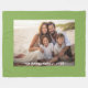 Use a horizontal or landscape photo and make a unique and trendy photo blanket. This modern minimal design includes a border in a color of your choice (change it in the advanced design area) and a simple line of text to add any names and other event information. If you need to move anything around, click on the customize button to make changes.