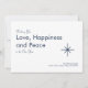 Simple New Year Peace 2026 holiday card with a navy blue typography design. With customizable lettering, you can add your own family name. A white snowflake image accents the front of the card and with a white background on the back. A lovely way to send your wishes of love and peace in the new year.