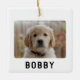 Simple 2 Dog Photos Pet Name Christmas Ceramic Ornament. Minimalist design with 2 custom photos and pet's name. Add your photos and name and make a lovely photo keepsake for a dog or any other pet.