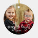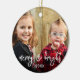 Simple 2 Photo Merry Christmas Holiday Name Modern Ceramic Ornament