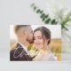 Two photo wedding thank you card in gorgeous white script calligraphy overlay and heart with a simple prewritten, changeable message on the back.